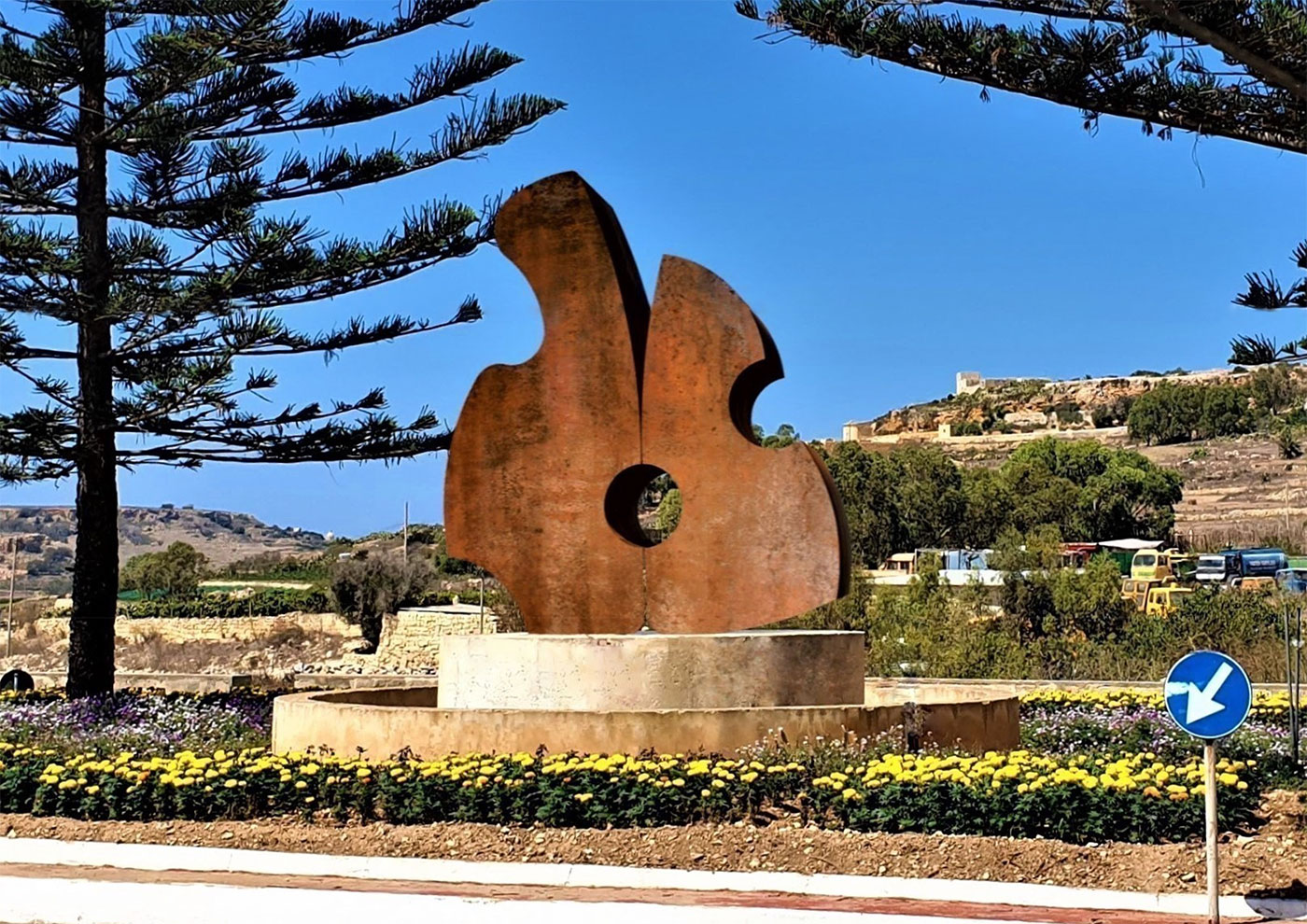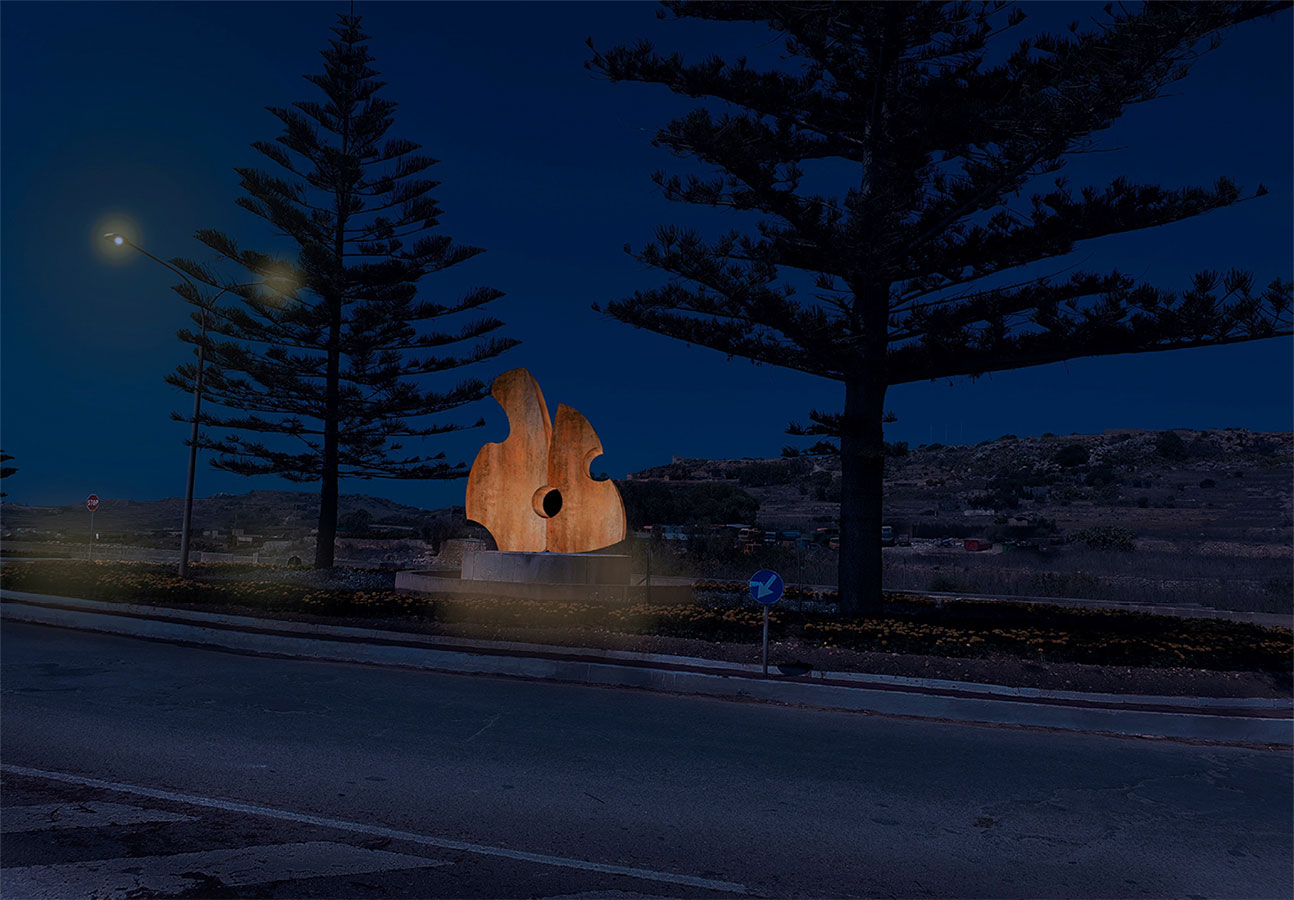 The design (artist’s impression – image reference no. 1) originates from studies of the megalithic stones that adorn the Ggantija Temples and that make Xaghra a world renowned place and a UNESCO World Heritage Site. The image attached illustrating large megalithic stones at the entrance to one of the temples (image reference no. 9) and detail from a megalith (image reference no. 10) inspired me to develop an artistic concept with a contemporary frame of mind. The minimalist approach to this theme captures the grandiosity and monumentality of these megalithic forms. The ultimate aim is to create a balanced composition with interest in harmonious linear and curved shapes. A circular hole appears when both forms come together. The circle is the symbol of totality, wholeness and also as in this case, cyclical history, according to which the periodicity of history is based on the repetition or recurrence of social processes. This work suggests that the historical heritage of our ancestors still bears a weight on what we are as a nation and culture today. At the same time, it also conveys the idea that our nation moved forward and evolved throughout history.